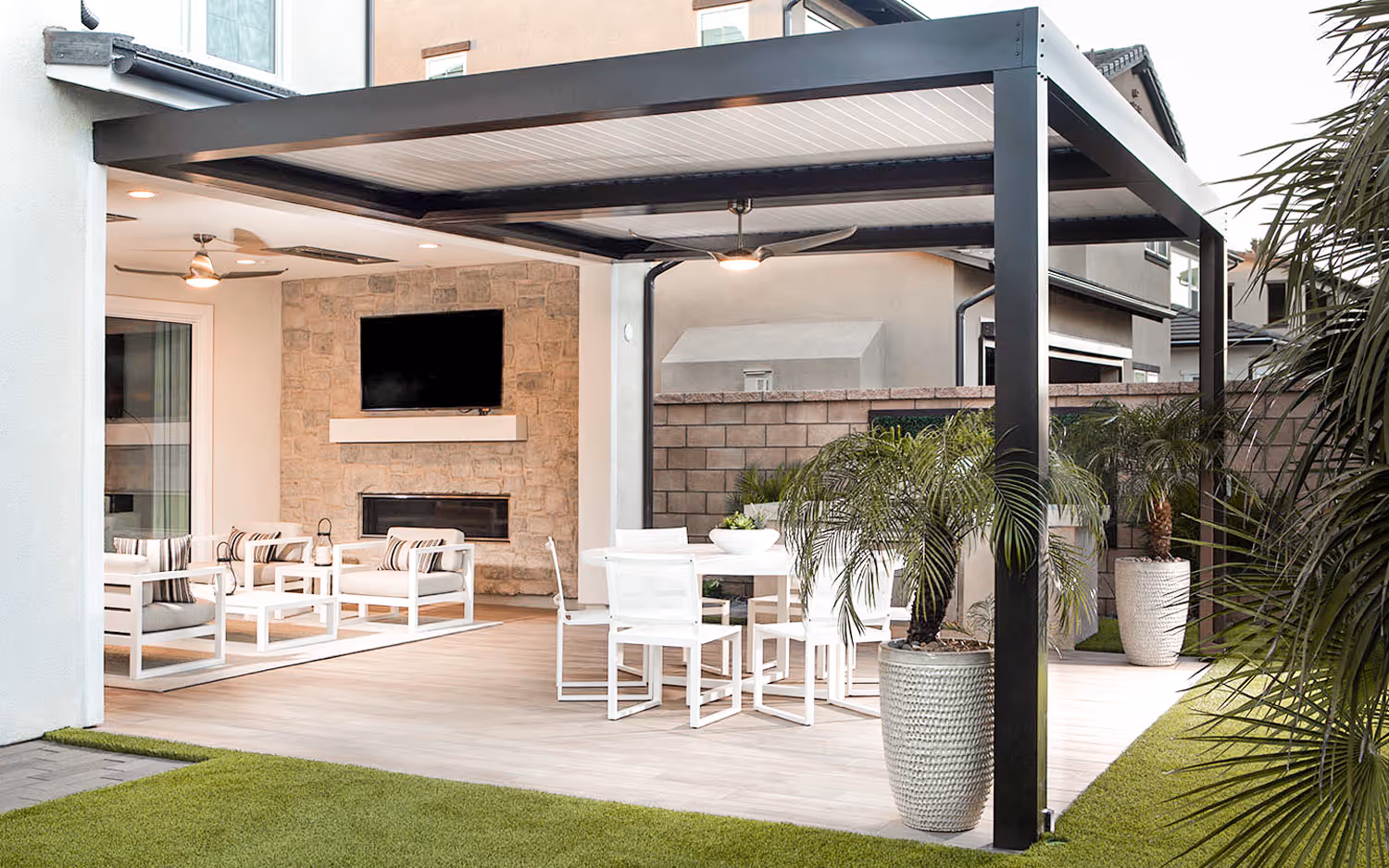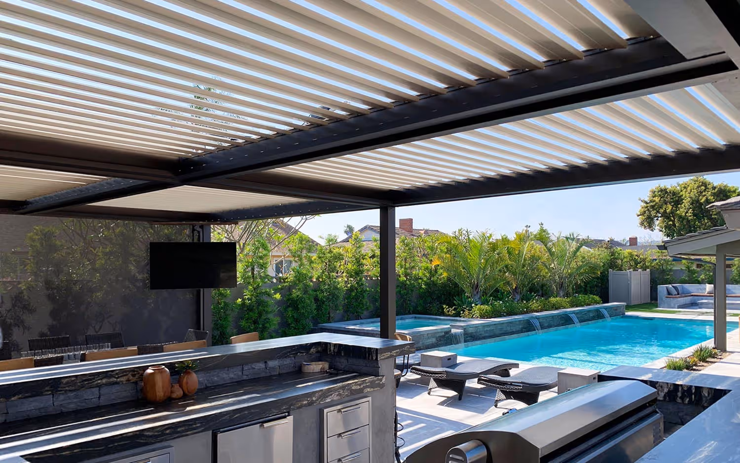 A louvered roof transforms your outdoor area into a versatile living space for year-round enjoyment. Tailored to complement nearly any architectural design, our louvered roof systems elevate and enhance your vision, making it a reality.